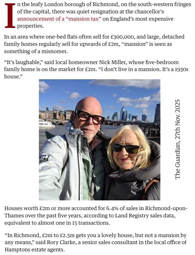 The new “Mansion Tax” on homes valued at over £2,000,000 does nothing to change the grossly unfair Council Tax and makes our property taxes even more complicated. More work for lawyers.
